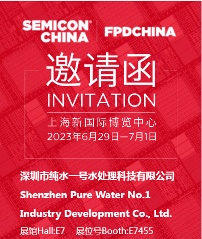 誠邀您參加深圳市純水一號水處理科技有限公司的展覽活動,共同探索水處理領(lǐng)域的最新發(fā)展和創(chuàng)新。作為水處理行業(yè)的領(lǐng)跑者,我們將在SEMICON China 2023上海新國際博覽中心展示最新的科技創(chuàng)新、高效節(jié)能的水處理設(shè)備和解決方案。