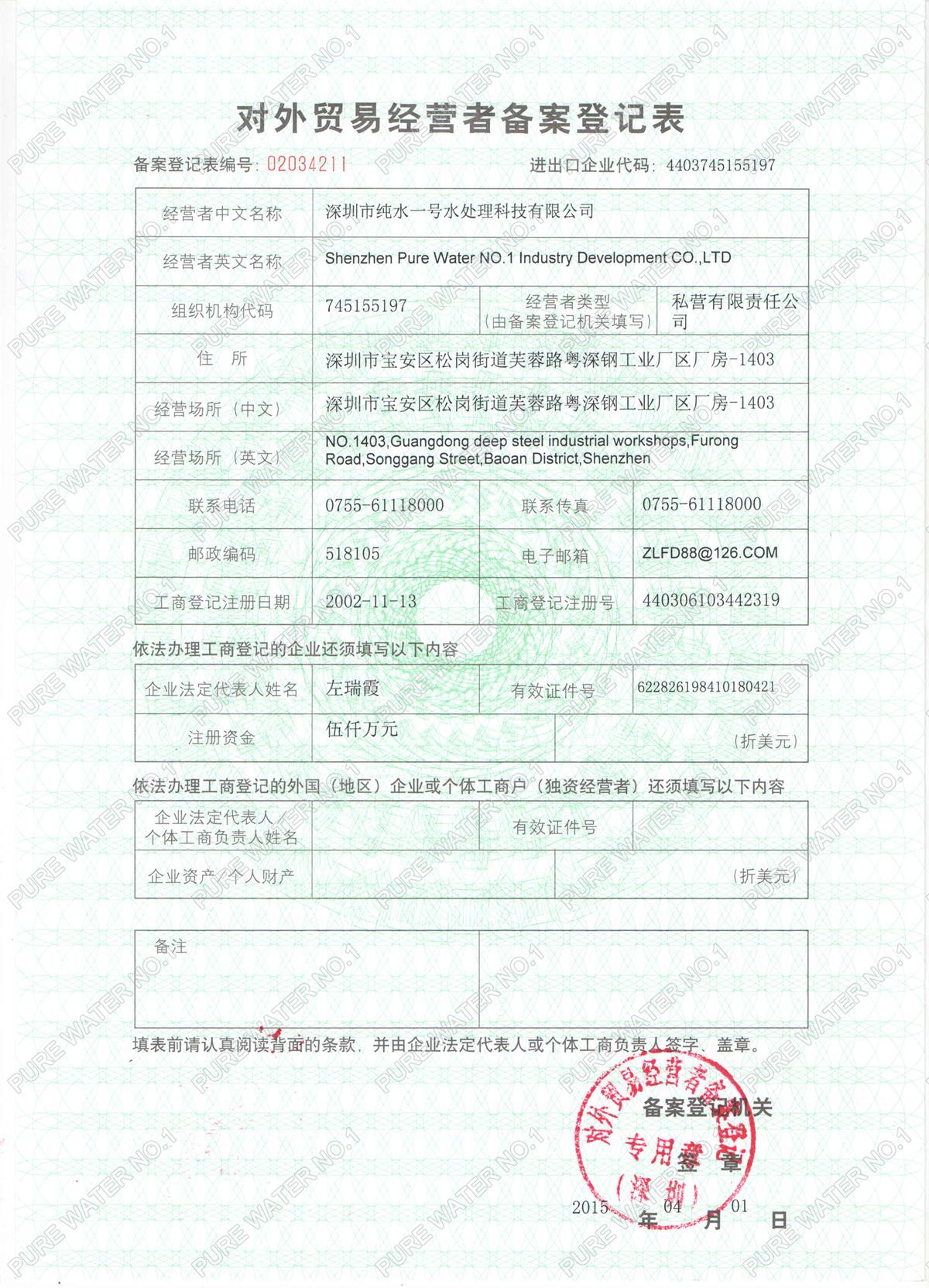 對(duì)外貿(mào)易登記表