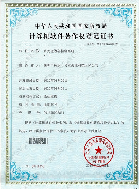 水處理控制系統(tǒng)專利證書