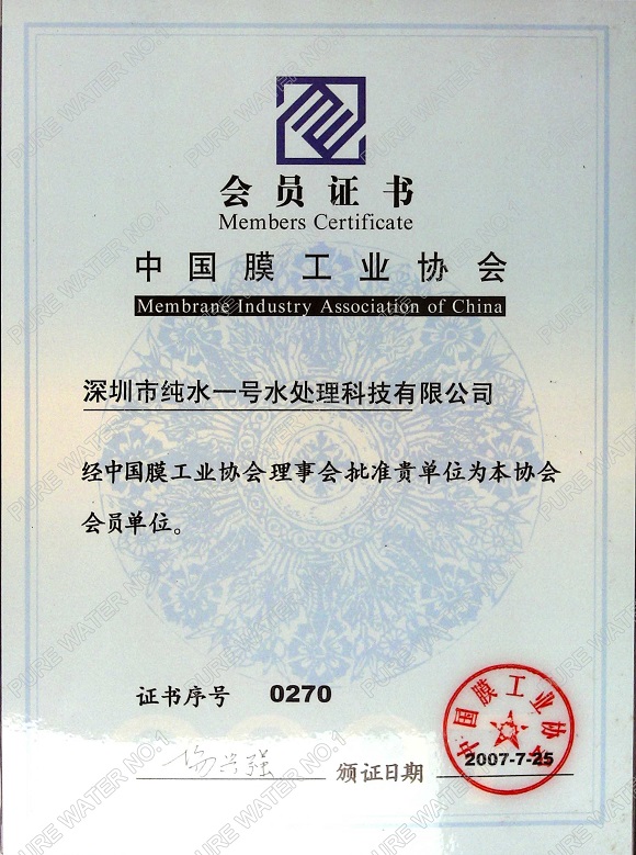 膜工業(yè)協(xié)會會員證書