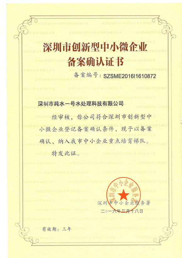 深圳市創(chuàng)新型中小微企業(yè)備案確認(rèn)證書